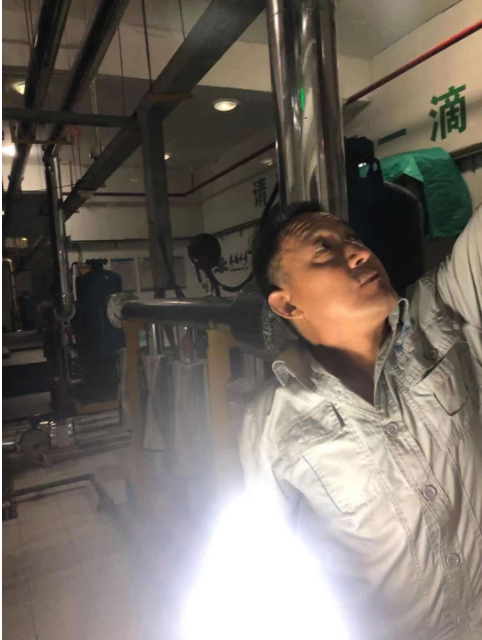 這一天戶表維修中心的王起老師來到了萬達豪景苑小區,這里樓內的地下室管道因自然損壞漏水,因管子在地下室上方,現場又沒有合適的施工材料,施工過程出現了些許障礙。為了抓緊解決樓上用戶用水的問題,王老師帶領施工隊伍,第一時間定好施工方案,領好材料,準備施工,由于管道懸空,采用打哈夫的施工方案,工人師傅們在悶熱的地下室內一氣呵成,完成了管道的修補。而這一忙就是一整天。
