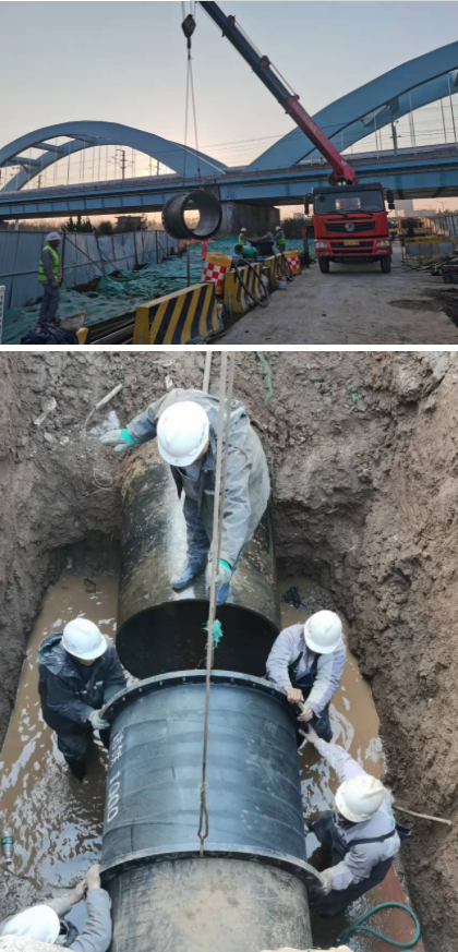 (市政管網(wǎng)公司 陳曉凡訊)2021年12月5日,經(jīng)十西路與黨楊路交叉口DN1000鑄鐵管閘門加裝完畢。