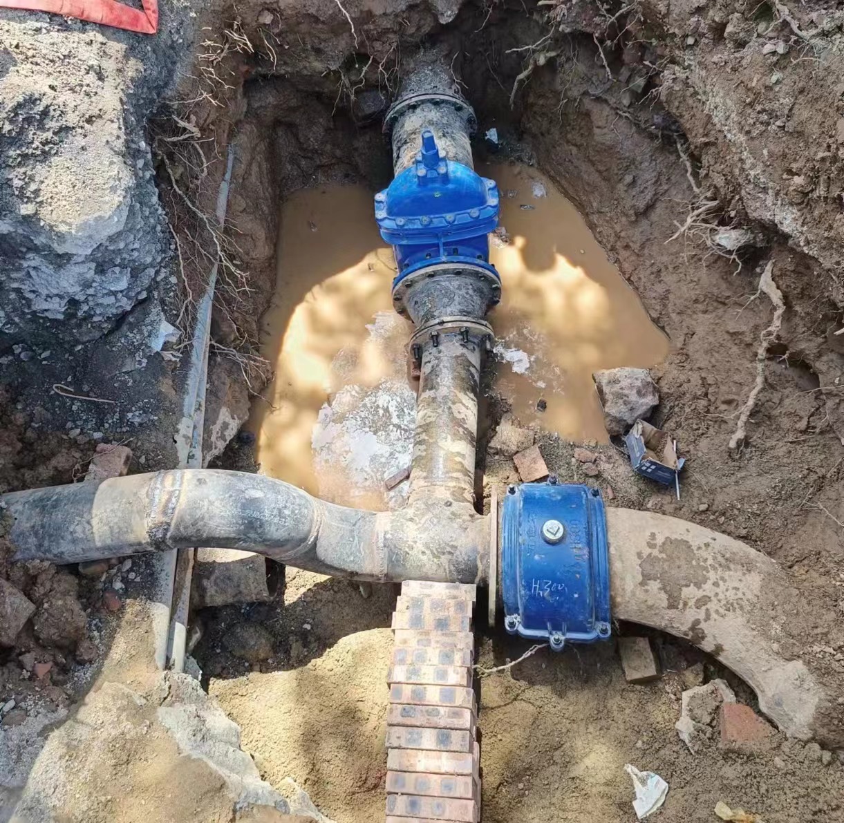 5月2日晚上23時43分搶修東站接到群眾反映,位于英雄山路和六里山南路發現DN200管道漏水情況,部分小區水壓較低,嚴重影響老百姓正常生活,為保障居民正常用水,搶修東站陳世龍、李海波第一時間趕往查看,立即制定解決方案,維修人員不顧下起的中雨,關閉閥門,更換水管。面對地下管線錯綜復雜,作業坑內大量積水等困難,搶修人員半蹲著身子,科學有序,爭分奪秒進行搶修,經過7個多小時的冒雨搶修,漏水問題徹底解決,所涉及范圍內小區用戶恢復正常供水。