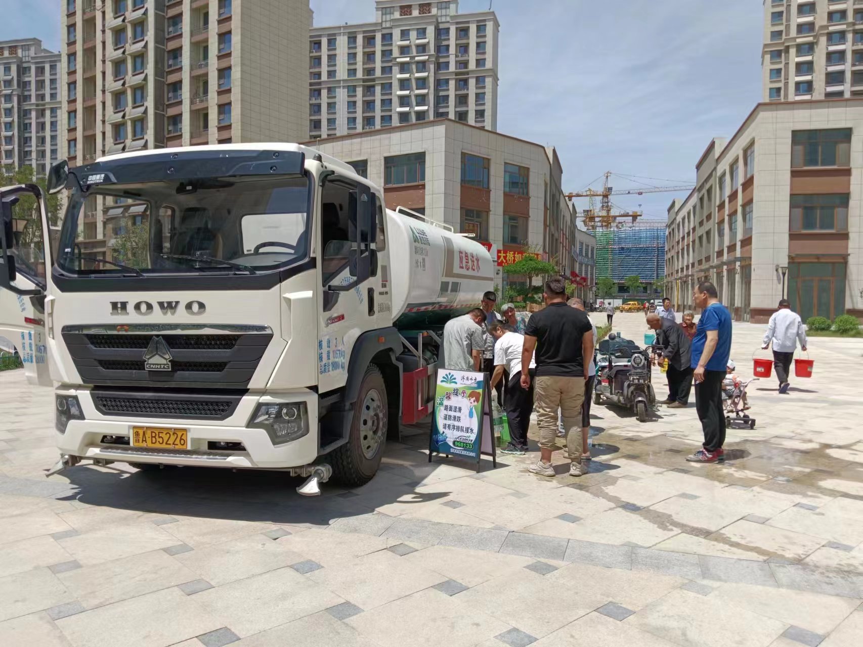 供水車輛到達現場,按照應急送水服務要求,將車輛放到接水指定位置,擺好指示牌為用戶提供接水服務,市政管網送水駕駛員一直堅守在送水現場,隨時檢查用水情況,及時補水。截止下午6點完成送水任務。