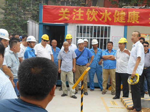 為積極貫徹落實集團公司關于促進工程施工管理標準化,全面提升配屬隊伍管理水平,2014年8月4日下午,管網公司組織公司所屬全體配屬隊伍主要負責人及現場管理人員到恒大帝景示范樣板工地參觀學習。在參觀過程中,管網公司領導及相關負責人對示范工地展示內容及要求做了詳細的講解,并要求全體配屬隊伍在今后的工程施工中要根據現場實際情況,嚴格按照示范工地標準執行。